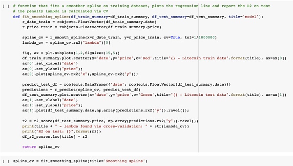 平滑樣條似乎是Litecoin價格最合適的分片插值。該模型在測試數據集上實現了迄今為止獲得的最佳R2值。