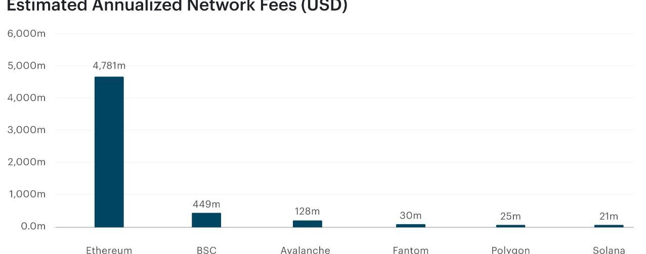 圖1-各個區塊鏈的年化網絡費用估計來源:CoinShares