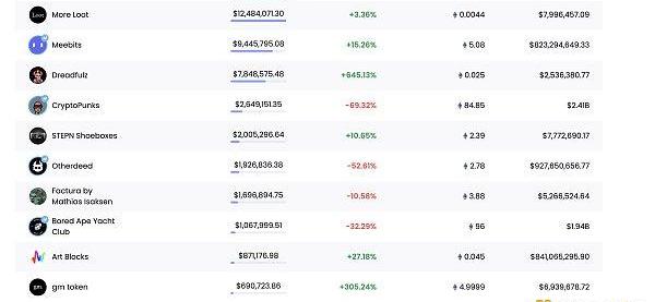 24小時內銷售漲幅前十的NFT數據來源:NFTGO