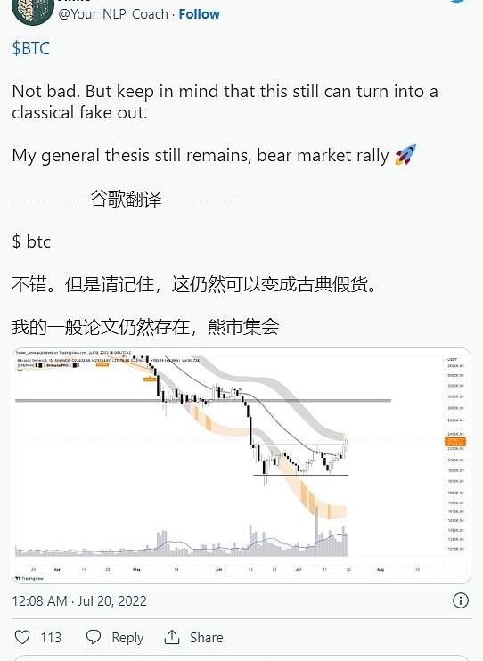 7月19日,比特幣回升至23,000美元上方后,這一現實的證據得到了廣泛的警告,即此舉只是在市場走向新低之前的一次偽造。