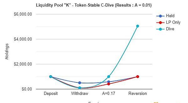 與簡單的買入、持有和賣出相比,相對于協議功能允許的標準行為,LPDive自然會產生指數級的利潤。規模較小的存款人可以通過這種方法獲得更多利潤,并且更容易在較便宜的鏈上進行測試。