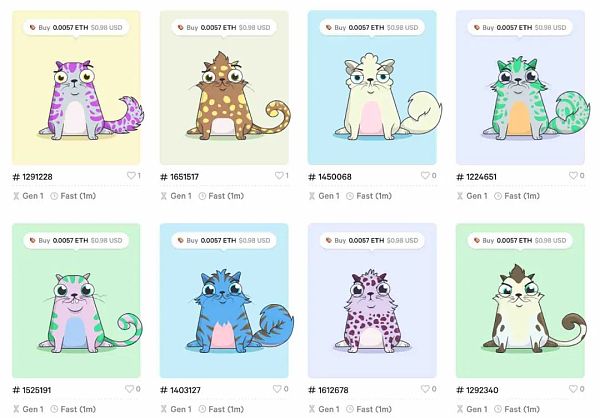 2017 年底在以太坊滑鐵盧黑客馬拉松亮相的加密貓(CryptoKitties)第一次讓 NFT 進入主流。加密貓是一款基于區塊鏈的虛擬游戲,允許玩家收養、繁殖和交易虛擬貓。開發團隊用以太坊智能合約在游戲中建立一種鏈式繁殖算法來確定貓的遺傳密碼,通過完善的激勵機制確保“繁殖”的隨機性和預見性,并推出了荷蘭式拍賣合約,激勵人們購買交易貓咪牟利。加密貓的橫空出世與 2017 年上一輪加密貨幣牛市不謀而合,正可謂是烈火烹油。當時,人們瘋狂地購買、繁殖和交易加密貓,導致以太坊網絡第一次遭遇大規模擁堵。加密貓的爆紅,還確立了 ERC721 作為以太坊平臺 NFT 技術標準的地位——ERC721 可以跟蹤區塊中每個通證的所有權和轉移,從而讓區塊鏈能夠識別 NFT。不過,加密貓開發團隊卻對以太坊平臺吞吐緩慢、Gas 費昂貴的局限深有體會,其成立公司 Dapper Labs,從 a16z、USV 等頂級機構籌集風險投資后,潛心開發專注于 NFT 應用的 Flow 公鏈,終于在去年底今年初市場轉牛之際推出了 NBA Top Shot 這一在業內獲得最高用戶數和交易額的 NFT 爆款。