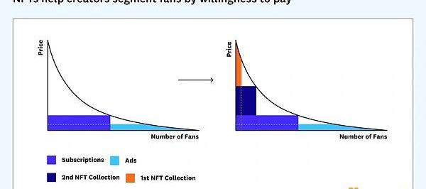 創作者可以通過細分粉絲的付費意愿,從NFT中獲得更多收入。在YouTube等傳統平臺上,針對不愿意為內容付費的用戶來說,創作者只能通過投放廣告獲利;對于愿意支付少量費用的用戶,創作者可以通過訂閱獲利;而對于一些有意愿支付更多費用的忠實粉絲,創作者并沒有很好的獲利方式。針對不同付費意愿的粉絲,創作者可以推出不同類型的NFT。例如,創作者可以以忠實粉絲群體為目標用戶推出限量版NFT,也可以為一般粉絲推出普通NFT。