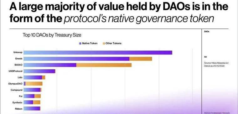 DAO:DAO是社區自治一大顛覆性突破。整個DAO領域國庫管理的資產一度突破百億美金。DAO大部分的資產都是原生的治理代幣。