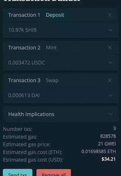 在操作層面上,Euler和Compound、Aave都有基本的存款、借款的操作。針對以太坊上的用戶,Euler開發了用戶友好的交易打包工具,能節省交易手續費。這個功能類似Furucombo的平臺主推功能。但不同之處在于,Furucombo是在多個DeFi協議之間做交易串聯,節省的手續費相對有限,Euler的交易打包工具是針對自己平臺上的交易,比如把借出的5種資產打包成一筆交易,打包后的交易只需要對這5個資產確認一次價格,這樣省下的手續費就很可觀了。這個工具配合延期流動性功能,還可以做閃電貸。