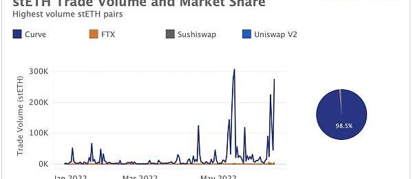 總體而言,stETH交易活動由Curve主導,占2022年總交易量的98.5%。盡管stETH也上架了Uniswap和Sushiswap等其他去中心化交易所,但交易量和流動性遠沒有那么高。