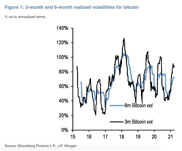 摩根大通(JPMorgan)在周四發布給客戶的電子郵件中指出,比特幣波動性的降低有利于機構投資者對比特幣資產的興趣。在彭博社發布的一篇報道中,包括摩根大通在內的策略師寫道: