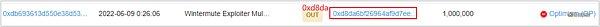 6月9日,合約0x4f3a將其中的100萬OP轉賬給了賬戶地址0xd8da,