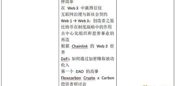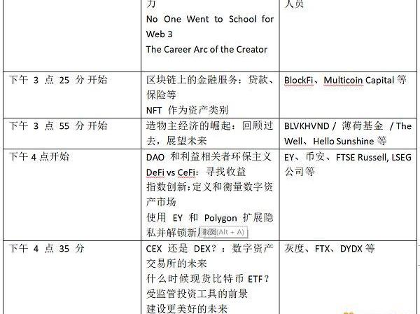 演講者包括FTX首席執行官SamBankman-Fried、富達投資董事長兼首席執行官艾比·約翰遜、作家尼爾史蒂芬森、ZORA社區負責人Latashá?、BigGreen聯合創始人兼首席執行官KimbalMusk、CoinShares首席安全官、貝寶總裁兼首席執行官、天使投資人和企業家巴拉吉·斯里尼瓦桑、前臉書產品經理、美國財政部副部長、幣安創始人兼CEO趙長鵬、新聞自由主席愛德華斯諾登……