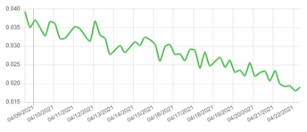 (Chiaexplorer 數據顯示,1 TiB 的理論「種植」獎勵已從月初的 0.03 下降至 0.019 ?XCH)