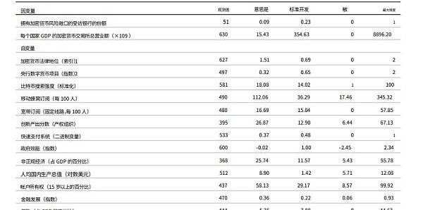 如表格1所示,我們考慮了銀行采用加密資產的廣泛潛在驅動因素。這些因素包括監管因素,例如司法管轄區對加密資產交易的立場。我們還測試了比特幣搜索強度的影響,回顧圖9中呈現的趨勢,以衡量?般投資者對加密資產的興趣。此外,我們還研究了數字基礎設施和司法管轄區創新的能力。行業特征、金融發展程度和跨境交易措施完善了我們對潛在驅動因素的選擇。