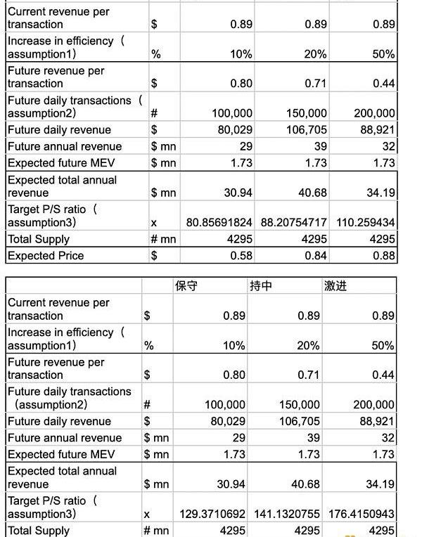 3.5.2P/Sratio在第一部分治理中我們最后提到,可以樂觀的推測未來的optimism的網絡收入OPholder通過權利能夠得到持續的現金流,那我們就嘗試用收入和P/S率來做一個測算。首先讓我們來計算revenue部分: