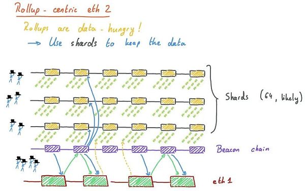 你聽說過區塊空間短缺嗎?rollup確實需要發布它們的數據,而eth1區塊空間非常少! 而且我們說過,交叉分片很難。因此,為了用我們的檸檬做檸檬汁,為什么不使用分片來保存需要發布的rollup數據呢?使用64個分片,這是現在可用帶寬的64倍,而且可能更多,因為一個分片區塊可能會比eth1鏈區塊當前能夠容納的數據量高得多。