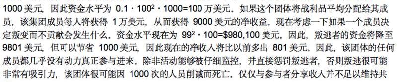 但如果情況不是這樣就需要形成一種文化承諾,即子團體的勾結構成作弊,就像竊取公共資源將構成作弊一樣。更一般地說,在小型和大型社會之間的情況下,將規范/社區執法與我們上面描述的正式計劃進行合理組合可能足以解決勾結造成的問題。但是,作為LR有效運營的最大威脅,只有通過實驗才能說明這些問題的嚴重程度以及如何最有效地克服它們。