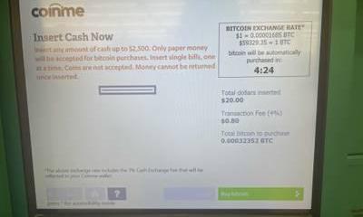 用ATM機購買比特幣的流程如下:將鈔票插入機器后,會發出紙質憑證。然后設置Coinme賬戶并完成KYC檢查。該機器對比特幣選項收取4%的費用,將比特幣兌換成現金則需收取7%的兌換費。