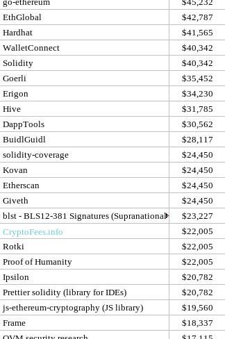 追溯資助各項目的差異很小:獲得最多的項目僅比第25名多出三倍,而在將這兩個類別結合在一起的Gitcoin圖表中,差距超過5倍,如果你看看DAppTech或InfraTech分別是15倍以上的差距!我個人將此歸咎于Gitcoin使用標準的二次融資()和未使用平方的追溯融資;也許下一個追溯融資應該只添加平方。