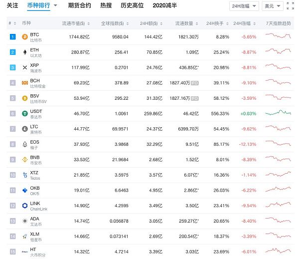 數據來源 CoinMarketCap 2020 年 2 月 19 日