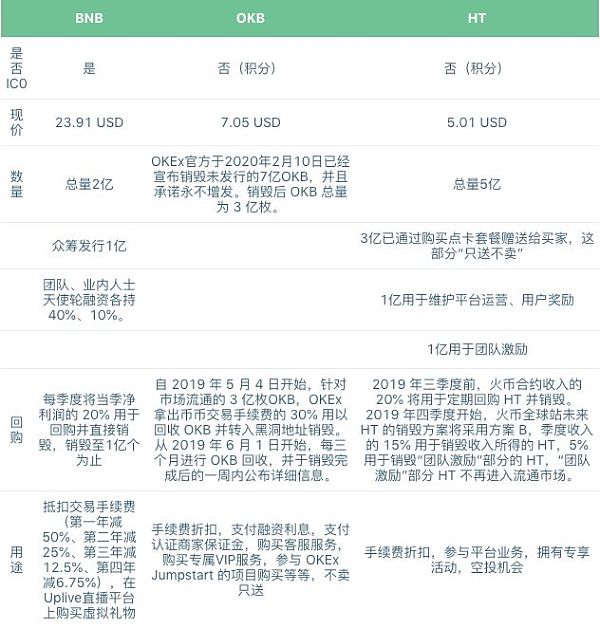在對平臺幣估值分析之前,先對三大平臺幣進行簡單的對比。如下表格: