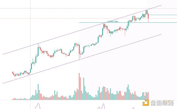 調整幅度也是比較大,最低回踩到了0.618支撐線,也是前期上行趨勢線附近,指標也接近前期下砸低位水平,這一帶跌破的概率不大,大方向還不能說趨勢結束,短線同樣在醞釀反彈,支撐22.5美金,壓力34美金,反彈后再次回落,若能止跌企穩,那么后續有望形成新一輪行情。