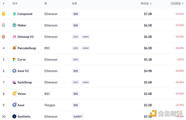 DeFi項目鎖定資產前十排名及鎖倉量,數據來源:Debank