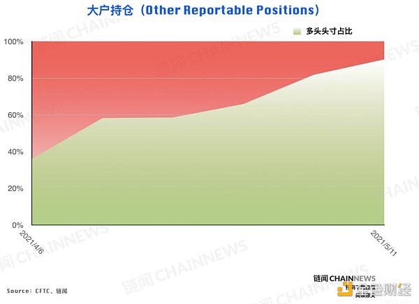 總持倉(未平倉總量)數量在最新一期數據中自 2416 張回落至 2157 張,該數值兩周連降,而且在行情持續上漲的情況下仍然能有如此調倉表現,可以認為市場已經提前嗅到了風險的氣息,并未盲目樂觀。