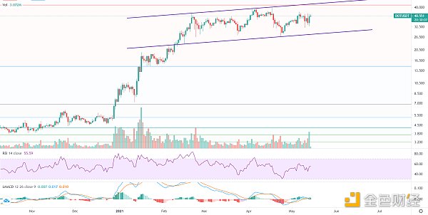聯動走勢,目前還是多頭趨勢,強勢還需時間的醞釀,短線仍處于整理周期,不破1美金趨勢支撐后續有望再次爆發,短期支撐1.2美金。