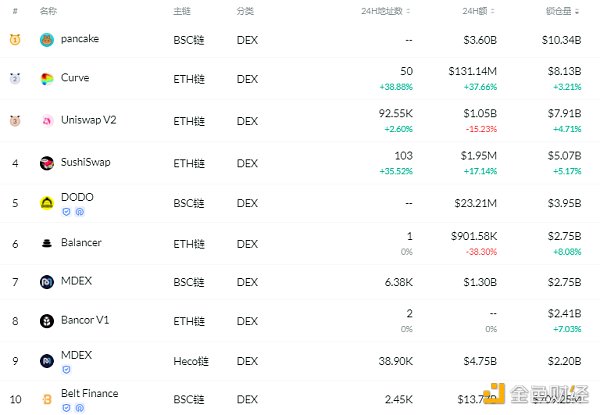 過去24小時去中心化交易所的交易量數據來源:Debank