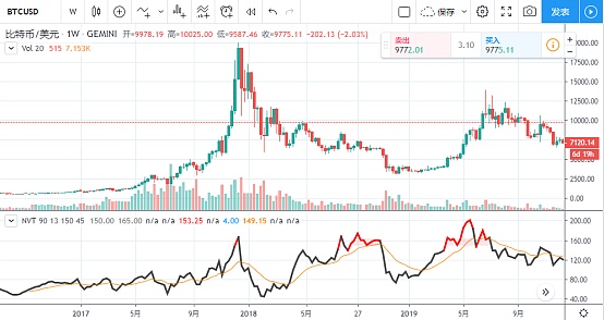NVT是網絡價值(市值)/每日平均鏈上轉賬價值。當比特幣市值不變時,每日平均鏈上轉賬價值越大,就標明比特幣的流通速度很快、流通量很大,但是市場還沒有意識到,得出的NVT值下降,即意味著比特幣的價值被低估。