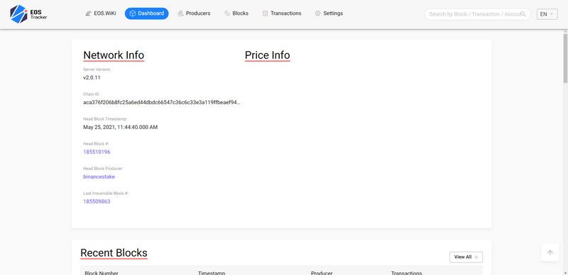 EOS Tracker 瀏覽器主要用來輔助查詢完整交易 id 以及其他一些交易對應區塊屬性,從而配合在其他區塊瀏覽器進行詳細查詢。
