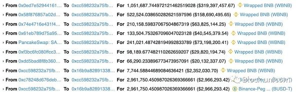 3)在PancakeSwap的USDT-WBNB池中增加了7.7k BNB和290萬USDT流動性,同時在該池中保留了LP代幣。4)通過此池將230萬BNB兌換為USDT。