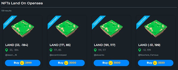 你可以做的是為上面提到的4個項目設置一個自定義搜索,即Cryptovoxels、 Decentraland、 Somnium Space以及The Sandbox,然后按“從低到高”對價格進行排序。你首先必須滾動瀏覽一些資產,這樣你可以通過一個單一的界面瀏覽一切。或者,你可以訪問這些項目的網站,查看它們各自的專用市場。