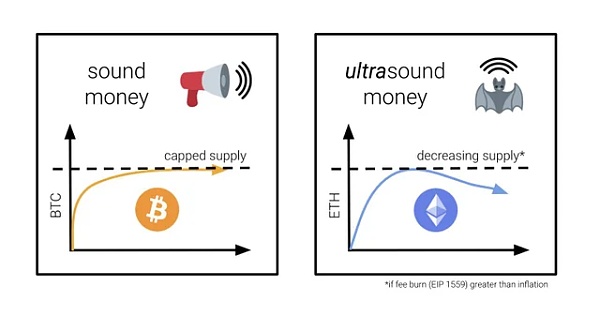 2)通貨緊縮貨幣。隨著 EIP 1559 即將實施,ETH供應量可能會出現通貨緊縮,從而消除其最大的貨幣弱點;