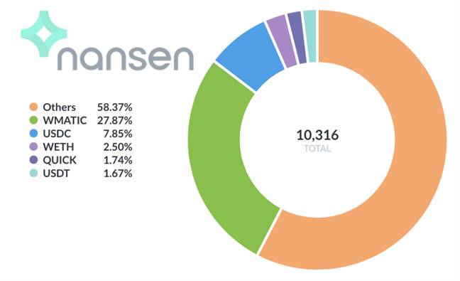 先發優勢很可能在這里生效。最早的 QuickSwap 礦池有采用 USDC 的代幣對而沒有 USDT,這個 Polygon 上最早的項目對 USDC 礦池的激勵力度更大。事實上,QuickSwap 上與 WETH 相比,與 USDC 配對的代幣更多。