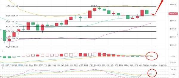 32850-32750附近低位多單進場,目標點位33210-33590,破位看33800,止損點位32150