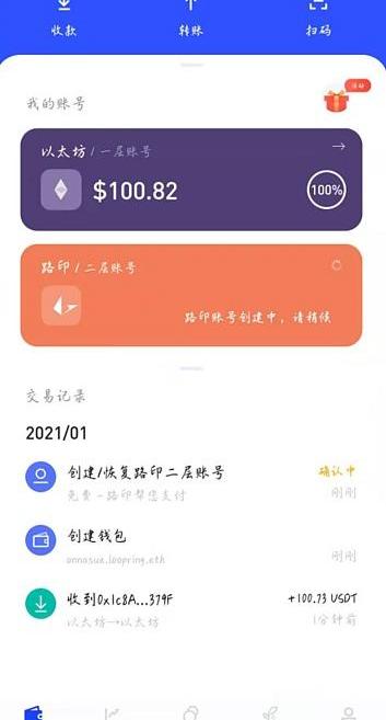 ???完成激活后在交易記錄會有提示,二層賬號創建的時間明顯要比錢包賬號創建的時間要長很