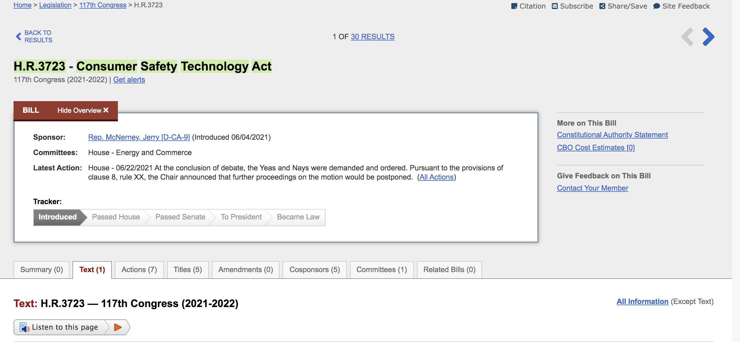 XRP/HKD-3.01%美東時間周二晚,《消費者安全技術法案》(The Consumer Safety Technology Act) 在美國眾議院獲得通過。