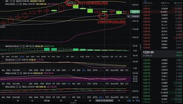 1215-1212附近多單進場,目標點位1230-1250-1270附近,破位繼續持有,已達到目標點位1273,多單斬獲63個點位。