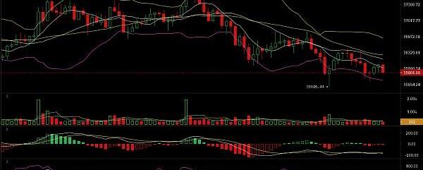 昨日晚間,二百在直播間給的空單策略也是成功到達止盈點位,相信跟上的朋友也是小賺了一波。今天早間行情上從四小時級別來看,目前在一個大三角區間內震蕩,震蕩上沿強壓制在38500一帶,短期壓力在四小時的布林上軌37800一帶。下方支撐在35300一帶,日內繼續維持震蕩思路,低位做多即可。