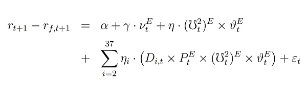 在這里,我們在回歸中使用替代波動率度量而不是預期波動率,具體來說,我們通過以下兩個方程檢驗模糊性的作用。