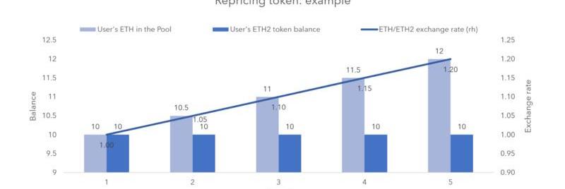 1.改變數量:在以太坊2.0質押合約之中的獎勵和懲罰通過改變代幣余額的方式體現,在第1.5代幣可流通階段,每一枚質押代幣將按1:1的比例在池中兌換為ETH;