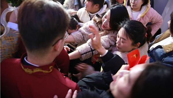 新娘閨蜜團把門索要紅包。徐云龍郭莎莎攝