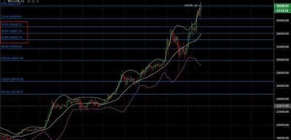 短期回踩支撐位35068.21刀,34081.7刀,33095.19刀,止跌都可以接。