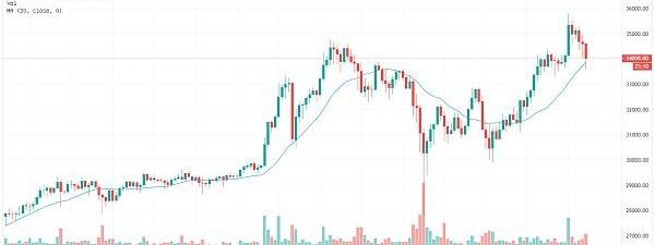 1900/1/1 0:00:00行情分析: 比特幣價格昨日沖過回落之后迅速拉回,日內凌晨價格在破位新高,最高觸及36733位置,目前價格仍是有進一步上行的可能.