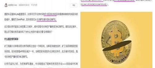 每10分鐘就有比特幣產生賬單,也就是區塊,每個區塊的產生伴隨著比特幣獎勵的產生,第一個四年這個獎勵是50個比特幣,每滿21萬個區塊,伴隨著區塊產生的比特幣獎勵就會減半,最近一次是在2020年5月12日,每個區塊獎勵6.25個比特幣;所有比特幣將在2140年全部發行,即每3.99年(=4)減半一次。