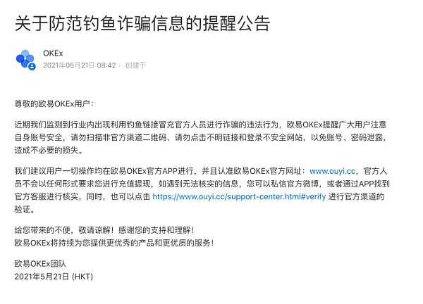 近期,最為高發的就是冒充交易所客服詐騙,幣安、火幣、OKEX等交易平臺也多次發布公告,提醒用戶警惕被詐騙。