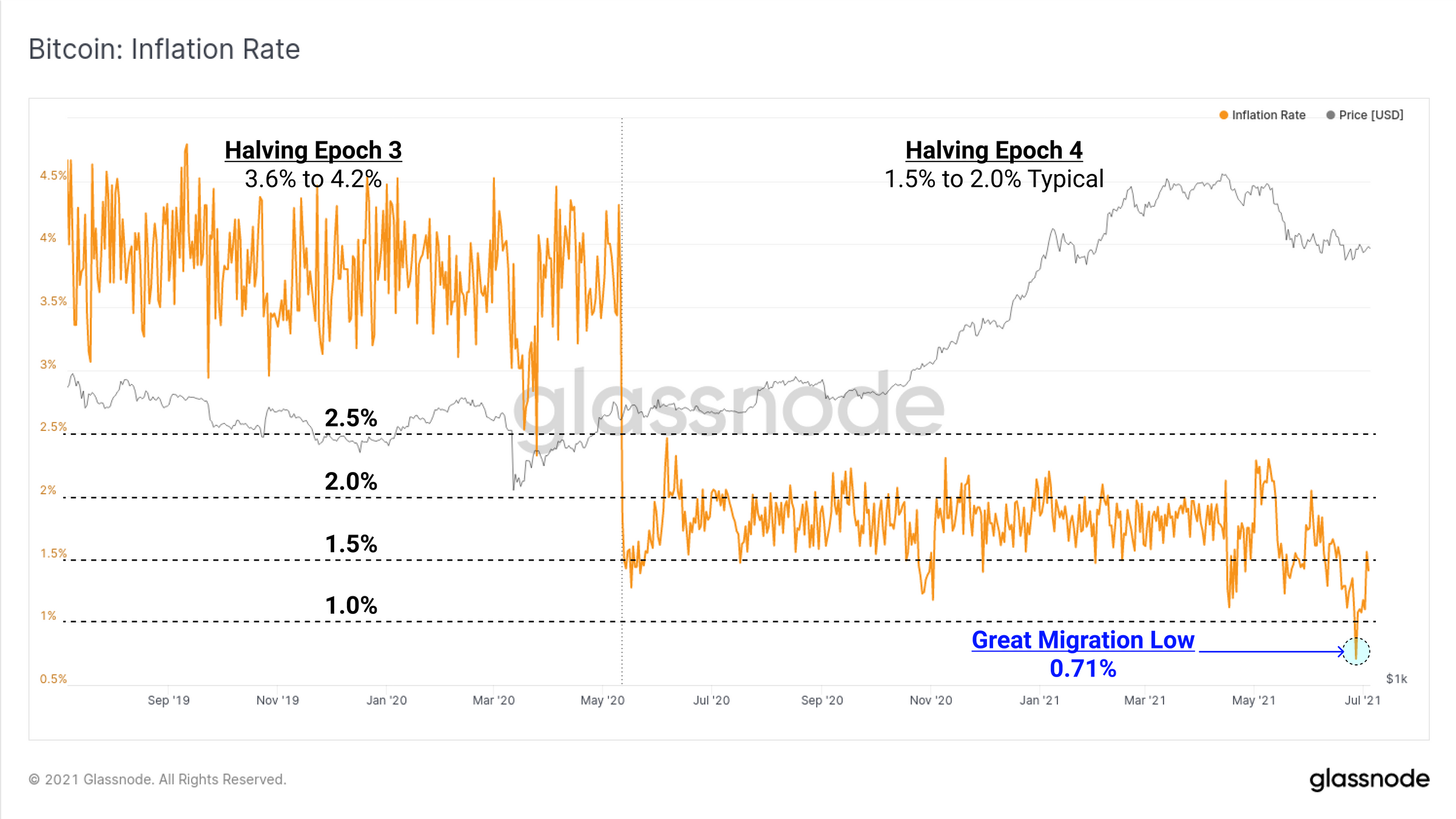 事實上,比特幣的發行率一度跌至 0.71% 的歷史最低點,使得S2F比值一度達到了140,如果只算這一天的話,那么比特幣要比黃金稀缺 2.37 倍(黃金的S2F值為 59)。
