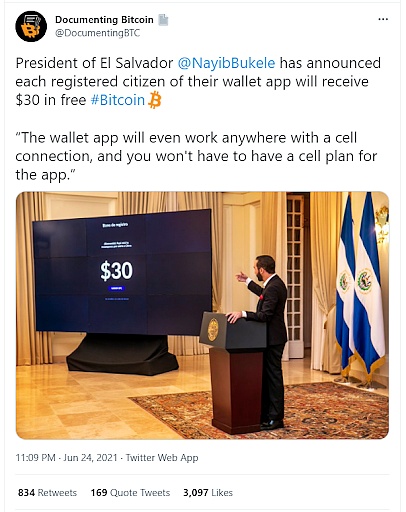 XRP/HKD-2.94%6月的第四周本是平常的一周,但對于生活在薩爾瓦多的比特幣愛好者來說,卻是不同尋常的。
