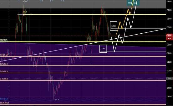 目前太子關注下方支撐位置的整體結構行情若急速下跌行情回落322.6一線概率偏大,行情目前位置處于小支撐位置附近下方不破位,出現上行走勢則關注348.6的位置,上破后可以參考關注行情繼續拉升結構走勢短線關注之前前高壓力區間。