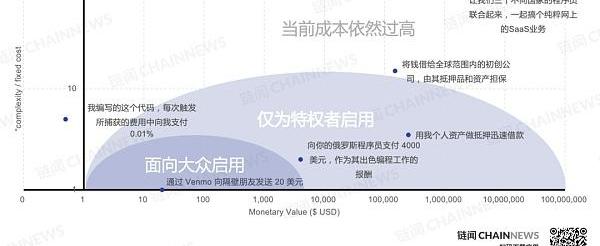 鑒于傳統模式中實施成本過高,目前可能仍存在大量成本極高的價值傳輸的空白地帶。