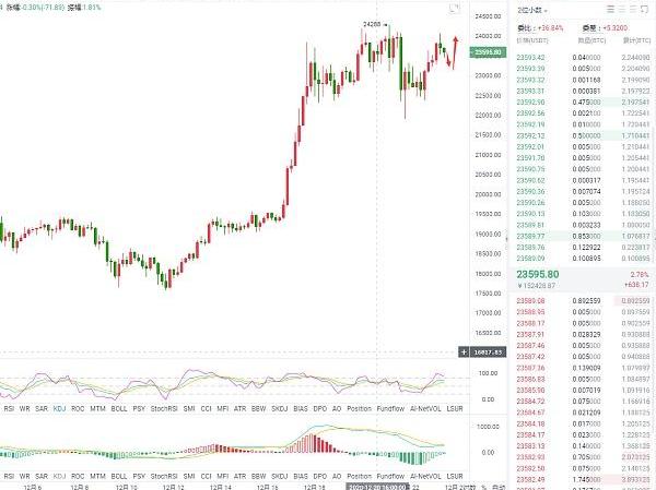 經過周一短暫下跌后,比特幣價格成功收復失地,早間重返24000附近高位水平,也是符合我們的思路的,再次說明目前多頭繼續主導市場,并不是坊間一些人所說的比特幣已見頂,暫時圣誕效應對市場影響有限,預料在圣誕前夕比特幣有望繼續前行,勢不可擋,將一些信心動搖的散戶甩下車。